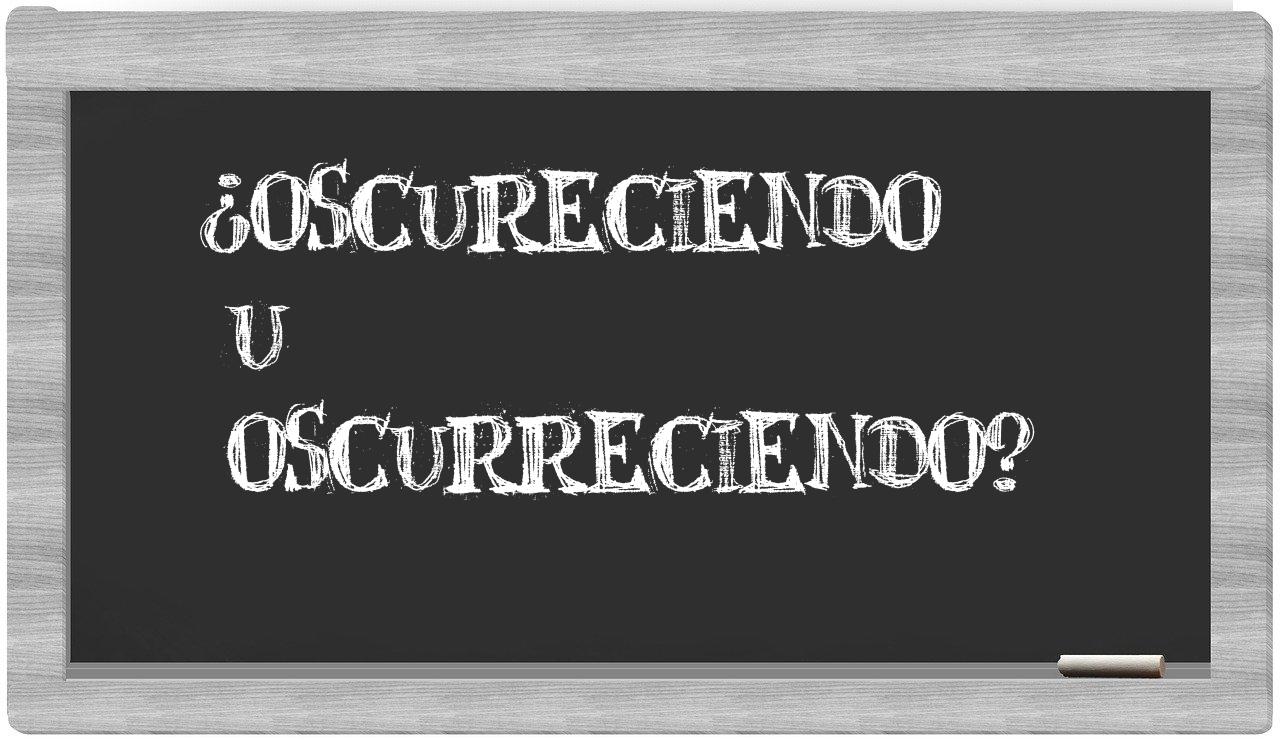 Cuando se presenta la distinción entre oscureciendo y oscurreciendo, la elección debería ser clara, puesto que únicamente oscureciendo es la forma aceptada; en cambio, oscurreciendo no se encuentra registrada en el Diccionario de la Real Academia Española.