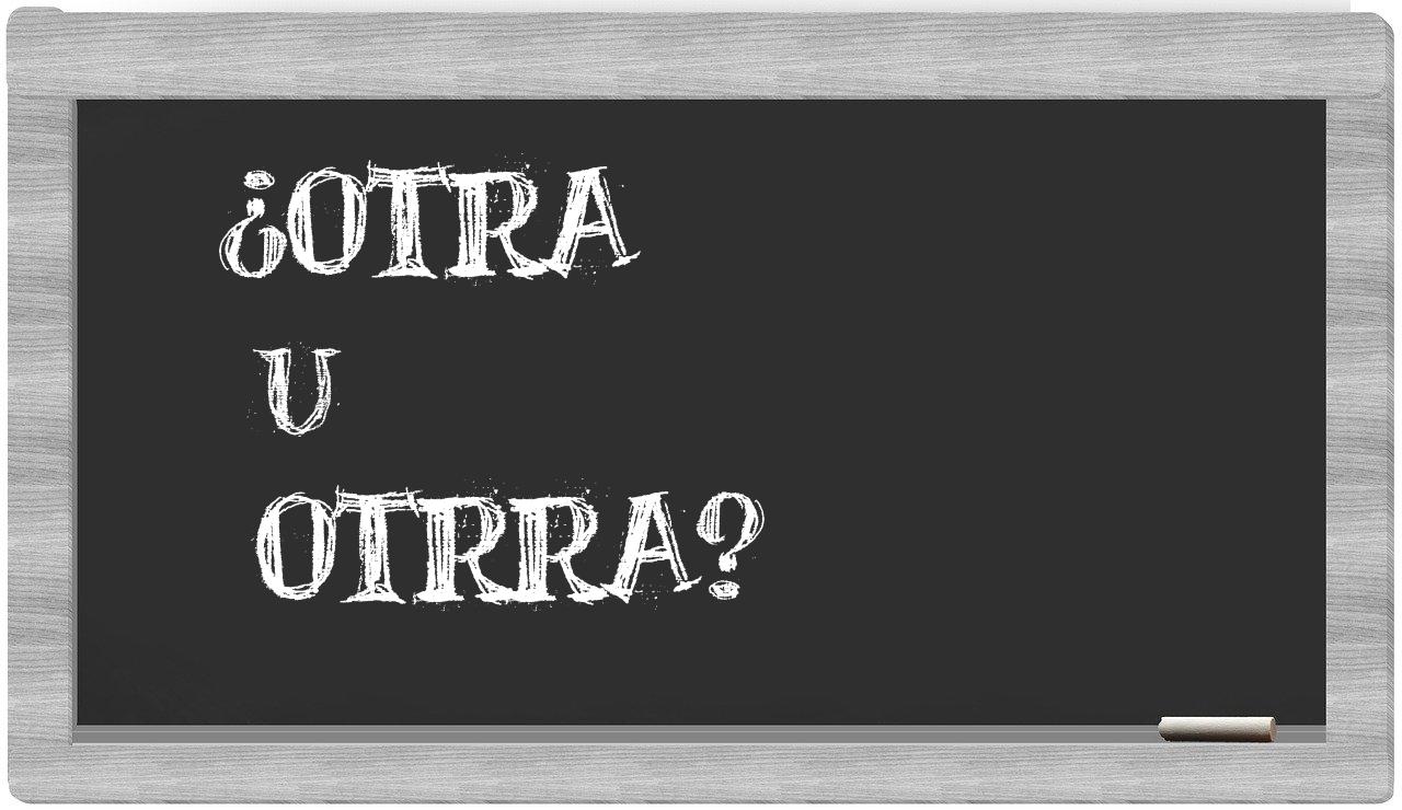 En la situación particular que se presenta entre los términos otra y otrra, es fundamental que no tengas ninguna incertidumbre, puesto que únicamente otra se encuentra correctamente redactado. Por otro lado, otrra no se halla registrado en el Diccionario de la Real Academia Española.