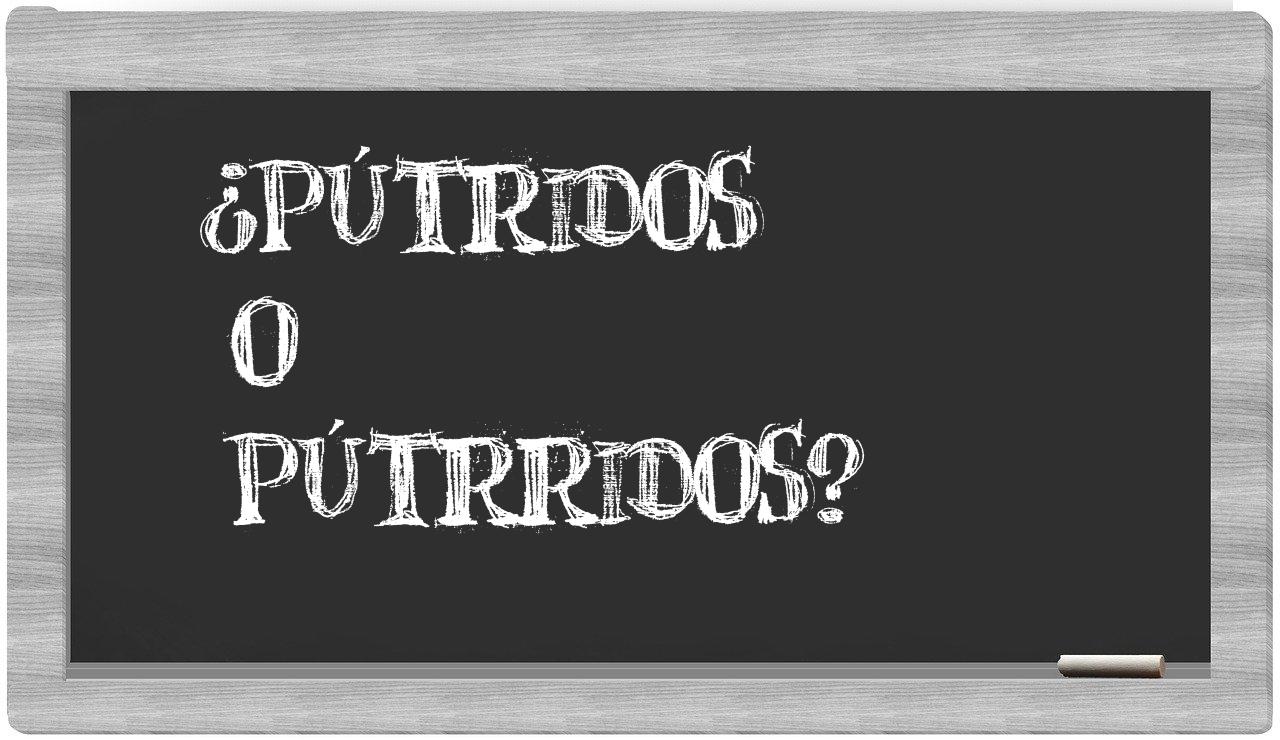 Cuando se presenta la disyuntiva entre pútridos y pútrridos, la elección debería ser clara, ya que únicamente pútridos se encuentra debidamente registrada en el Diccionario de la Real Academia Española, mientras que pútrridos queda excluida de su listado oficial.