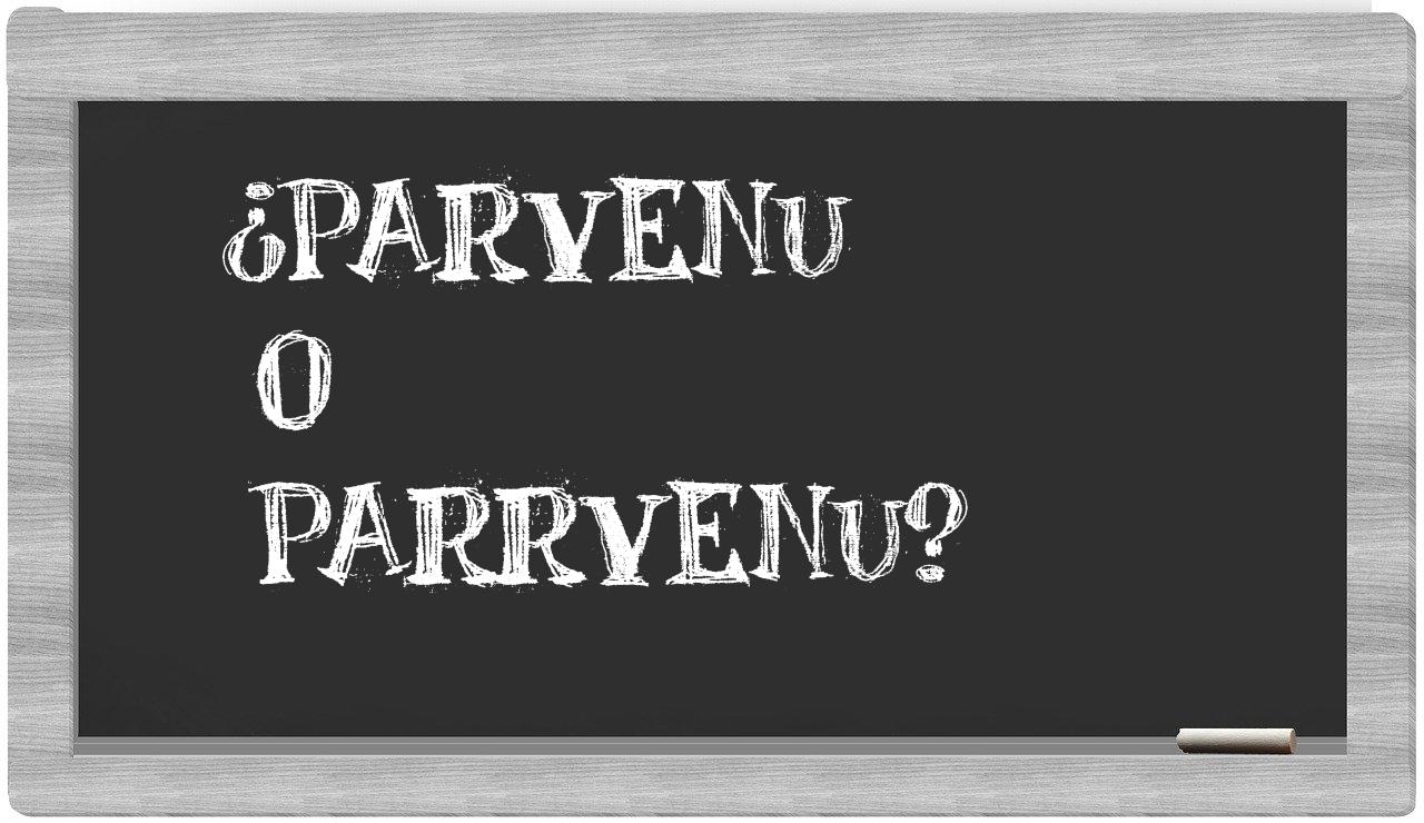 En la particular relación que existe entre los términos parvenu y parrvenu, no deberías titubear en ningún momento, puesto que únicamente parvenu es la opción que se encuentra debidamente registrada y validada. Por otro lado, parrvenu no figura en el repertorio del Diccionario de la Real Academia Española.