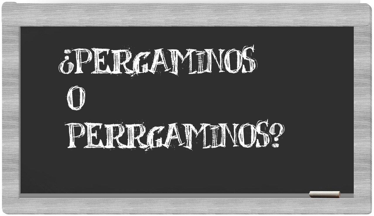 En la particular situación que se presenta entre los términos pergaminos y perrgaminos, la elección es indiscutible, porque únicamente pergaminos se encuentra debidamente asentada en la norma, mientras que perrgaminos no figura en el Diccionario de la Real Academia Española.
