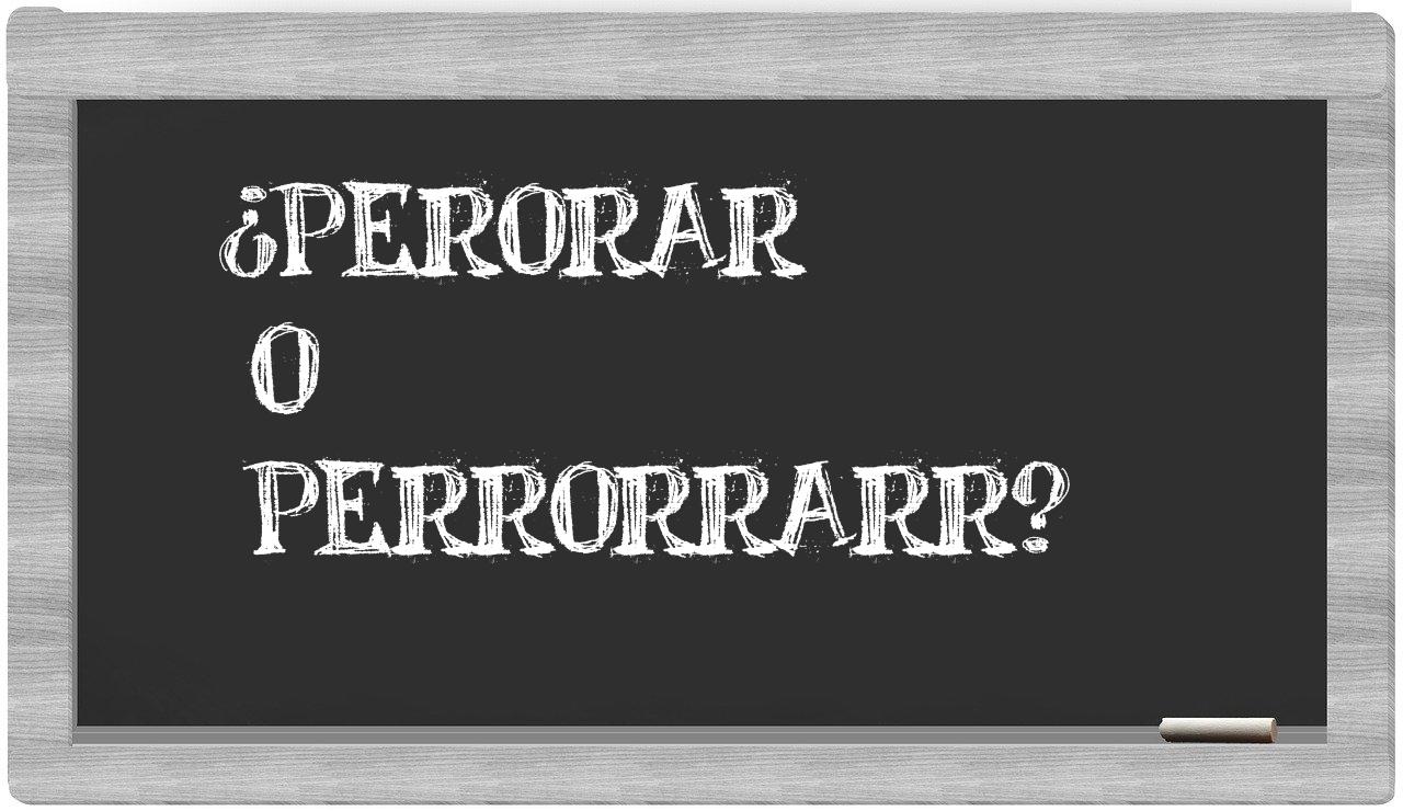 Cuando se trata de la relación entre perorar y perrorrarr, la elección es evidente y no debe suscitar incertidumbres, puesto que únicamente perorar se encuentra correctamente redactada. La palabra perrorrarr carece de reconocimiento en el Diccionario de la Real Academia de la Lengua.