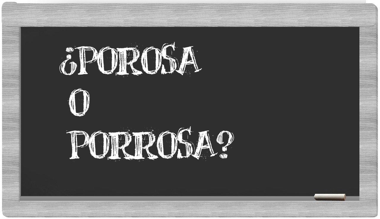 Cuando se trata de la elección entre porosa y porrosa, no te dejes llevar por la incertidumbre, pues solo porosa se halla correctamente redactado, mientras que porrosa carece de reconocimiento en el Diccionario de la Real Academia Española.
