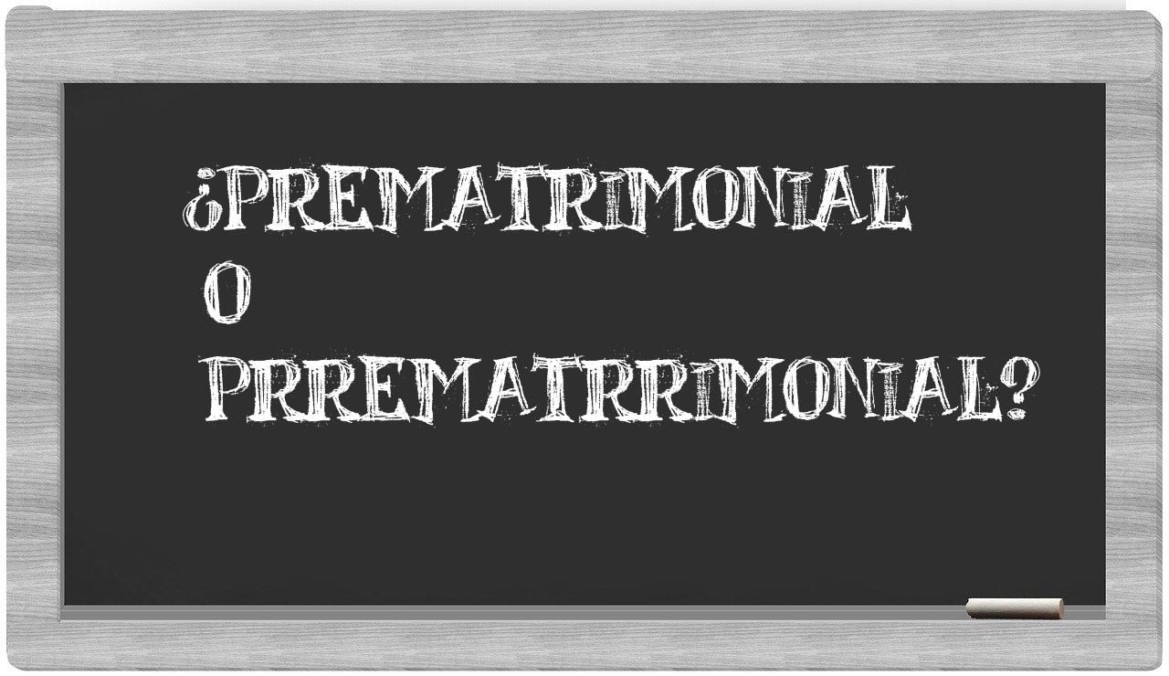 Cuando se trata de la distinción entre prematrimonial y prrematrrimonial, no hay lugar para la incertidumbre, puesto que únicamente prematrimonial se encuentra registrada adecuadamente. Por el contrario, prrematrrimonial no figura en el Diccionario de la Real Academia Española.