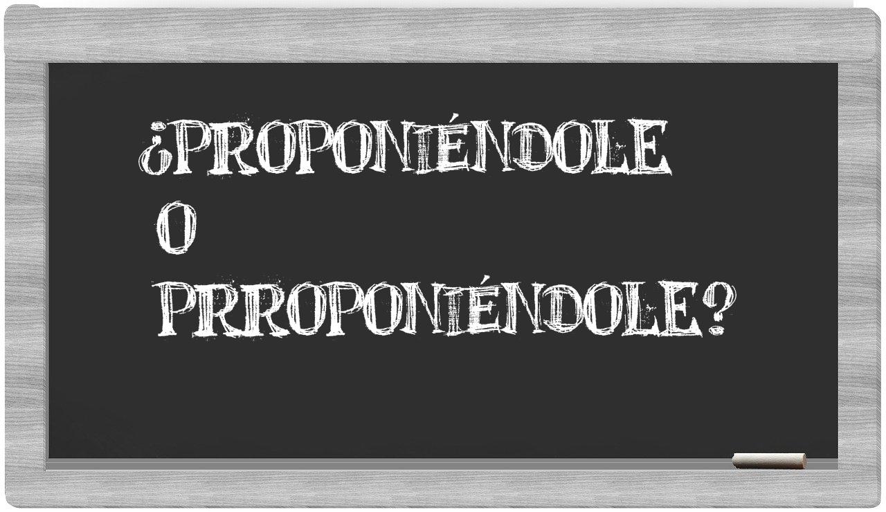 Cuando se trata de distinguir entre proponiéndole y prroponiéndole, no deberías experimentar ninguna inseguridad, pues únicamente proponiéndole se encuentra registrada de manera adecuada. En cambio, prroponiéndole no se halla en el Diccionario de la Real Academia Española.