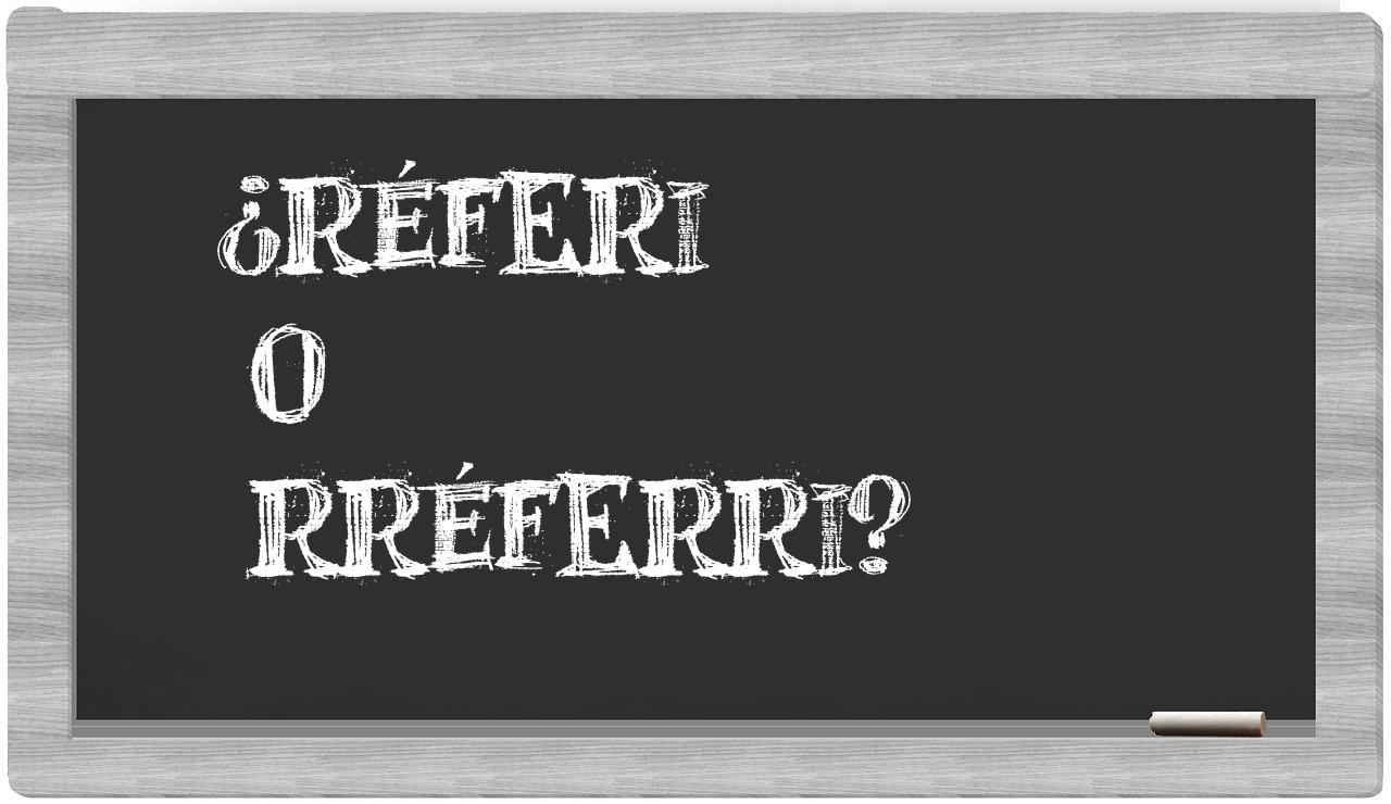 En la particular situación que se presenta entre los términos réferi y rréferri, es crucial que no titubees, puesto que únicamente réferi se encuentra correctamente redactada. Por otro lado, rréferri no se encuentra en el repertorio del Diccionario de la Real Academia Española.