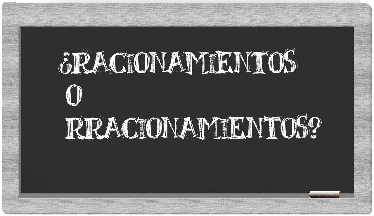 Cuando se trata de distinguir entre racionamientos y rracionamientos, es fundamental que no vaciles, puesto que únicamente racionamientos está debidamente aceptada en la lengua española, mientras que rracionamientos no figura en el Diccionario de la Real Academia de la Lengua.