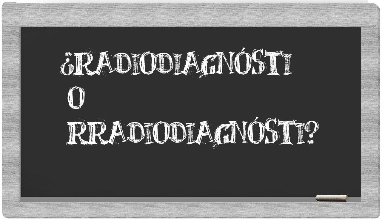 Al considerar la relación entre radiodiagnósti y rradiodiagnósti, no hay lugar para la incertidumbre, porque únicamente radiodiagnósti se encuentra debidamente registrada. Por otro lado, rradiodiagnósti no figura en el repertorio de la Real Academia Española.