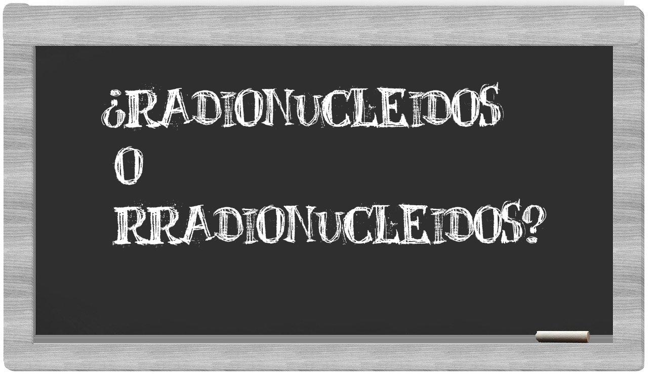 En la situación particular que involucra a las palabras radionucleidos y rradionucleidos, es crucial que no titubees, pues únicamente radionucleidos se encuentra correctamente redactada. Por el contrario, rradionucleidos no se halla registrada en el Diccionario de la Real Academia Española.