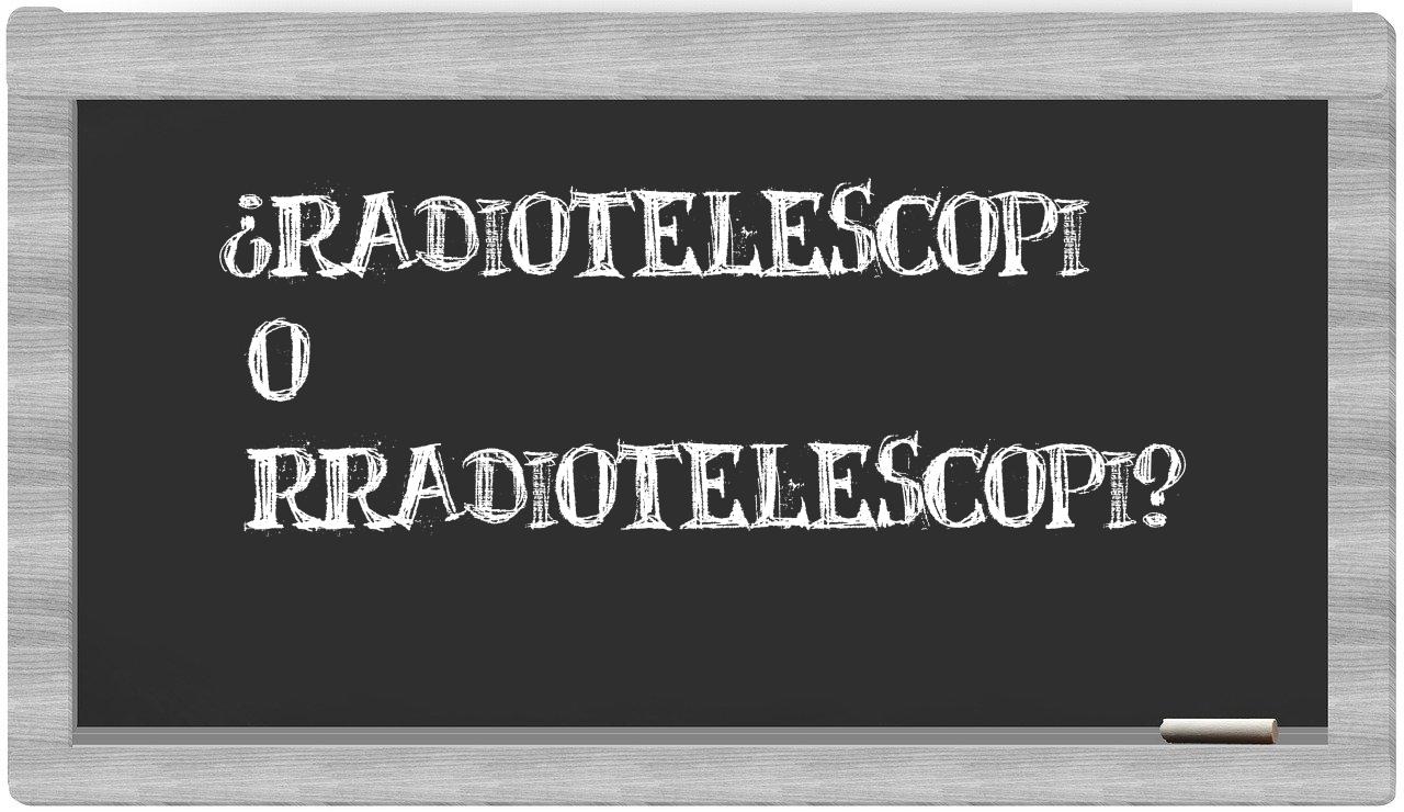 En la situación particular que enfrenta el término radiotelescopi en contraposición a rradiotelescopi, la elección no debe generar incertidumbre, puesto que únicamente radiotelescopi se encuentra debidamente registrada como correcta. Por otro lado, rradiotelescopi no figura en el listado del Diccionario de la Real Academia Española.