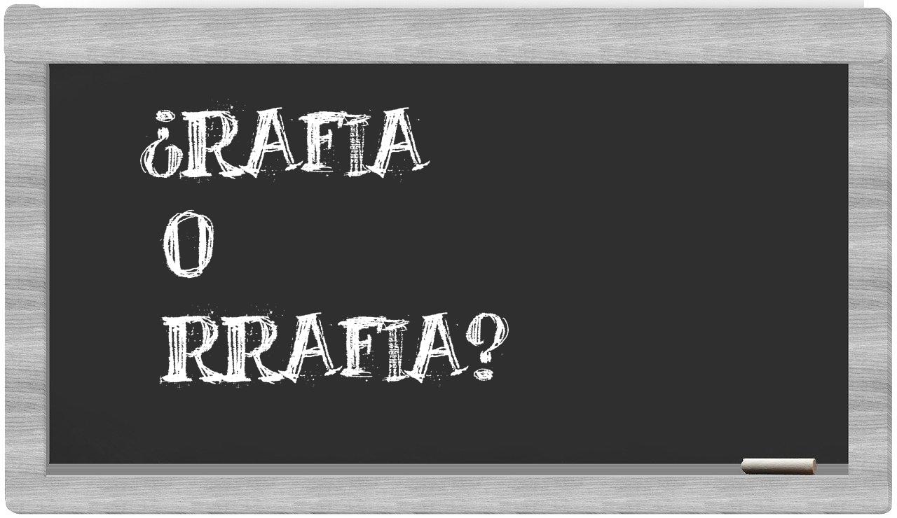 Cuando se confrontan las palabras rafia y rrafia, no hay lugar para la indecisión, puesto que tan solo rafia es la que se encuentra correctamente formulada. La palabra rrafia carece de reconocimiento en el prestigioso Diccionario de la Real Academia Española.