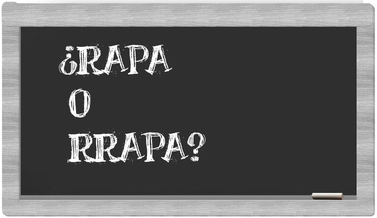 En la particular situación que involucra los términos rapa y rrapa, no deberías experimentar ninguna incertidumbre, ya que es únicamente rapa el que se presenta con la ortografía correcta, mientras que rrapa carece de reconocimiento en el Diccionario de la Real Academia Española.