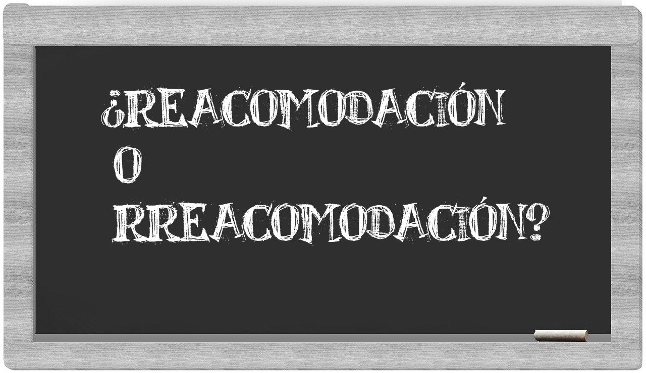 La mezcla entre reacomodación y rreacomodación se origina, en gran parte, por la similitud en su pronunciación. En la mayor parte de los acentos del español, las dos palabras suenan casi idénticas, lo que puede inducir a error al momento de escribirlas. No obstante, la escritura adecuada de cada término está determinada por su raíz etimológica y por las normativas particulares de la lengua española.