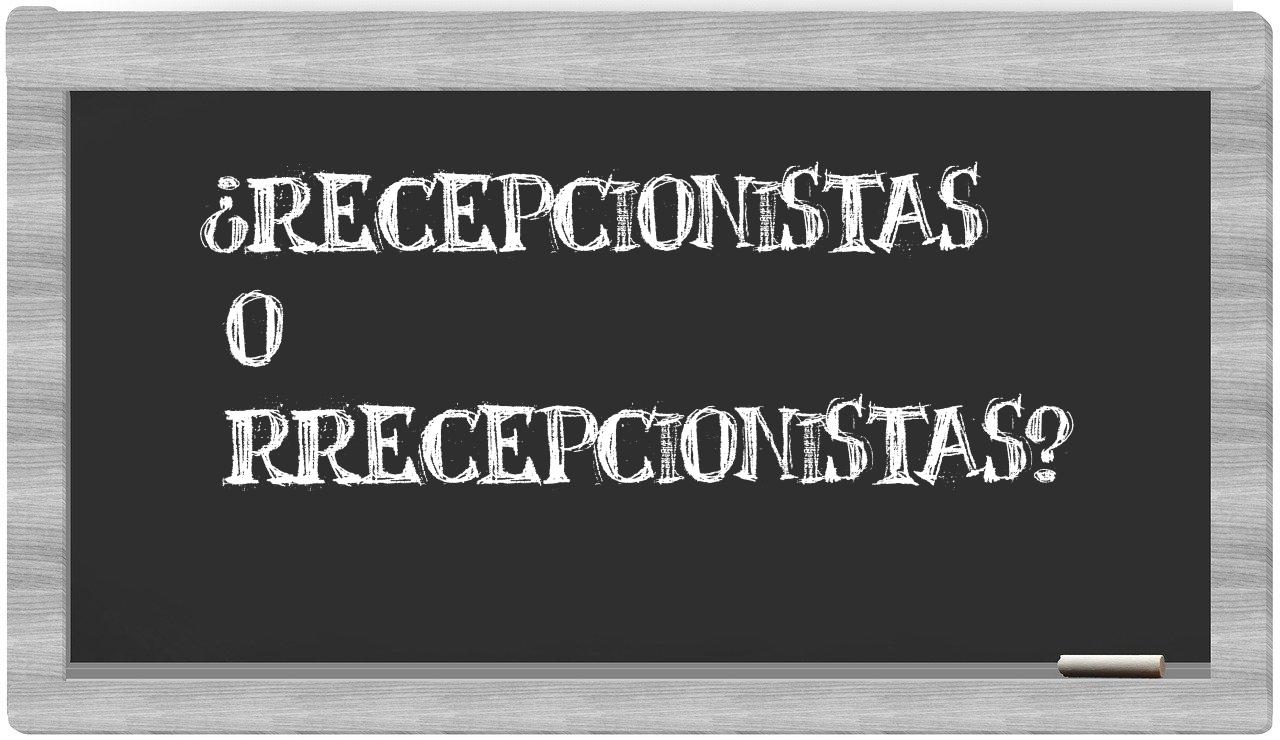 Cuando se presenta la situación entre recepcionistas y rrecepcionistas, es fundamental que no existan titubeos, puesto que únicamente recepcionistas es la opción que se encuentra correctamente redactada. Por otro lado, rrecepcionistas carece de reconocimiento en el Diccionario de la Real Academia Española.