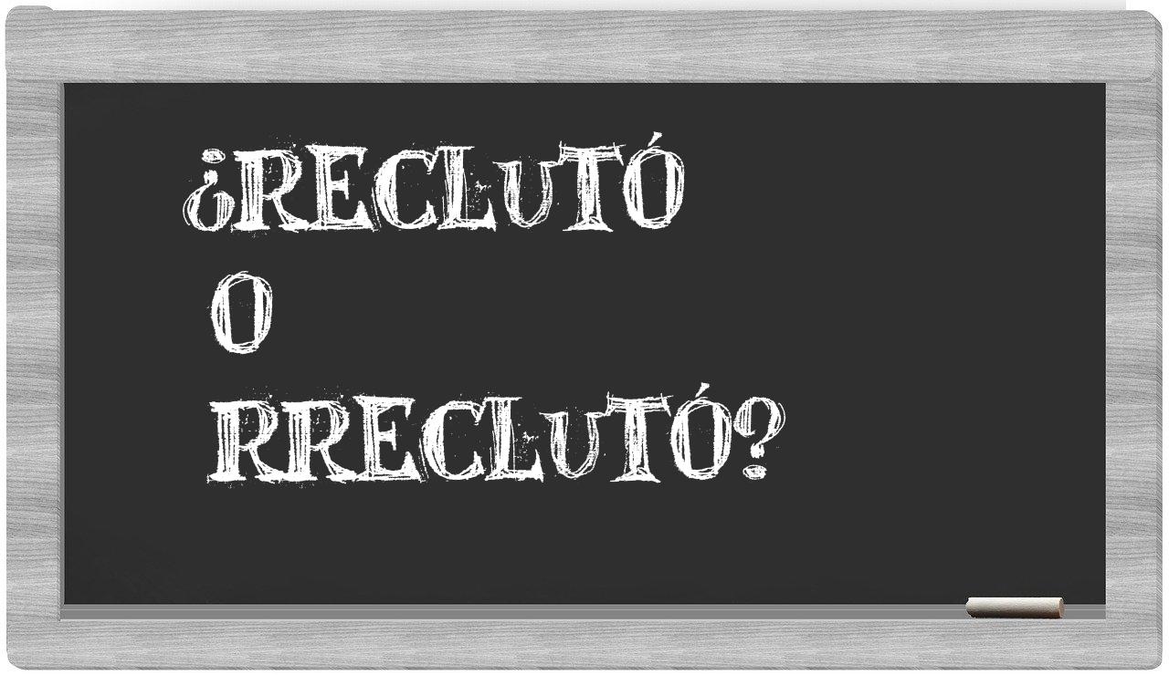 Cuando se presenta la disyuntiva entre los términos reclutó y rreclutó, la elección es clara y sin vacilaciones; únicamente reclutó se encuentra debidamente recogida en el acervo lingüístico de la Real Academia Española, mientras que rreclutó no tiene cabida en su diccionario oficial.