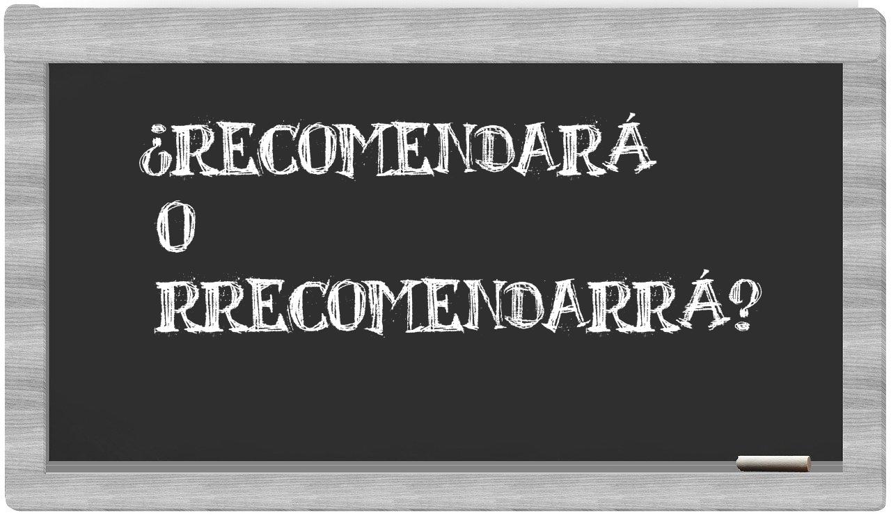 En la situación particular en la que te enfrentas a las palabras recomendará y rrecomendarrá, es esencial que no vaciles, puesto que únicamente recomendará se presenta como la opción válida. La palabra rrecomendarrá, por otro lado, carece de reconocimiento en el Diccionario de la Real Academia Española.