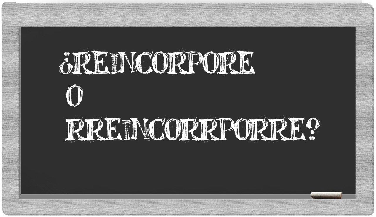 Cuando te enfrentes a la disyuntiva entre reincorpore y rreincorrporre, es fundamental que no titubees, puesto que únicamente reincorpore es la forma aceptada y autorizada, mientras que rreincorrporre no se encuentra registrada en el Diccionario de la Real Academia Española.
