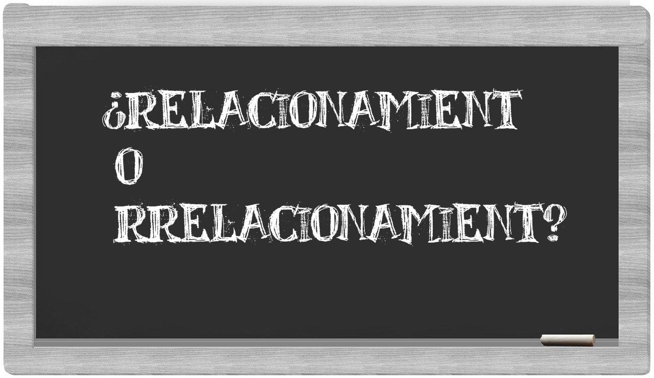 En la particular situación que involucra los términos relacionamient y rrelacionamient, es fundamental que no titubee, puesto que únicamente relacionamient se encuentra correctamente formulada. La opción rrelacionamient no está registrada en el Diccionario de la Real Academia Española.