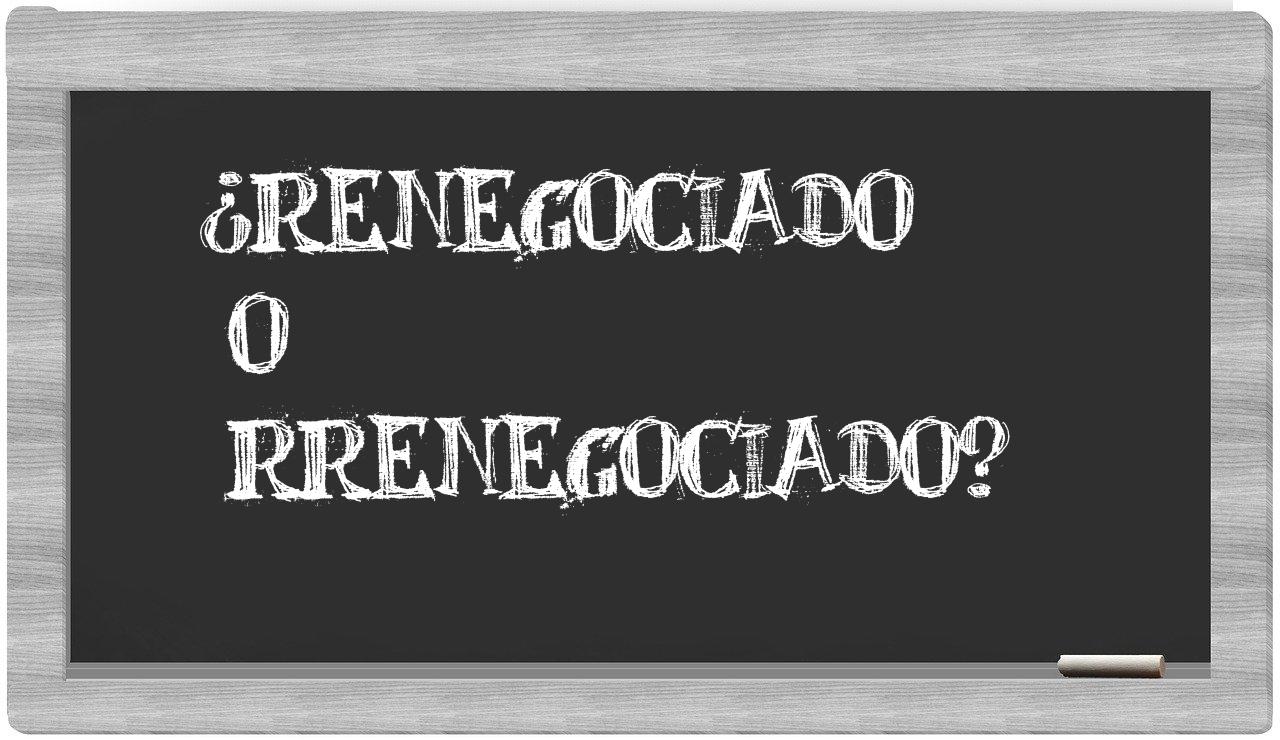 En la particular situación que involucra los términos renegociado y rrenegociado, es fundamental que no titubee, puesto que únicamente renegociado se encuentra correctamente formulada. La opción rrenegociado no está registrada en el Diccionario de la Real Academia Española.
