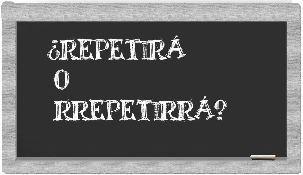 Cuando se trata de distinguir entre repetirá y rrepetirrá, la elección es indiscutible, dado que únicamente repetirá es la que se encuentra registrada de manera precisa. Por otro lado, rrepetirrá carece de reconocimiento en el Diccionario de la Real Academia Española.