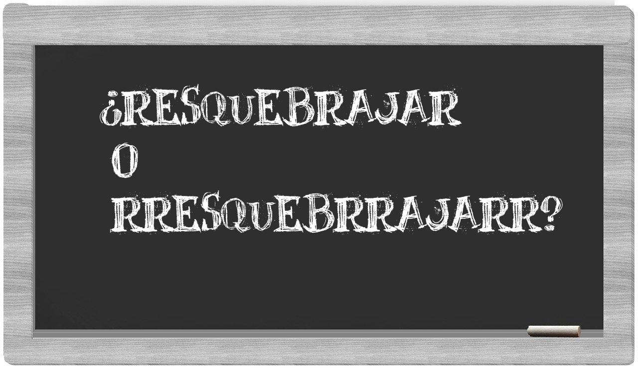 Ciertamente, en la situación específica que involucra los términos resquebrajar y rresquebrrajarr, no deberías tener incertidumbres, puesto que únicamente resquebrajar es la forma adecuadamente redactada. Por otro lado, rresquebrrajarr no se encuentra registrado en el Diccionario de la Real Academia Española.