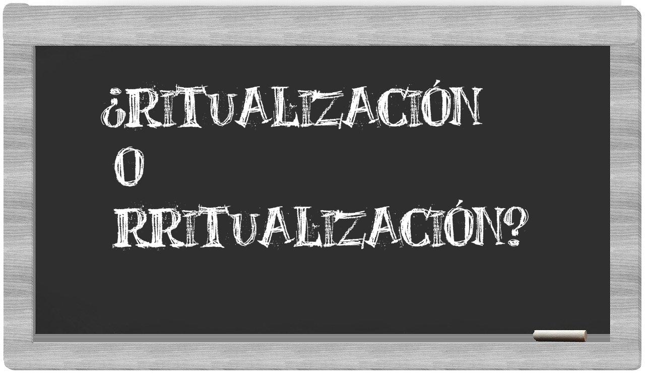 Cuando se trata de elegir entre ritualización y rritualización, no hay lugar a la incertidumbre, puesto que únicamente ritualización está aceptada en el léxico formal. En cambio, rritualización no figura en el diccionario de la Real Academia Española.