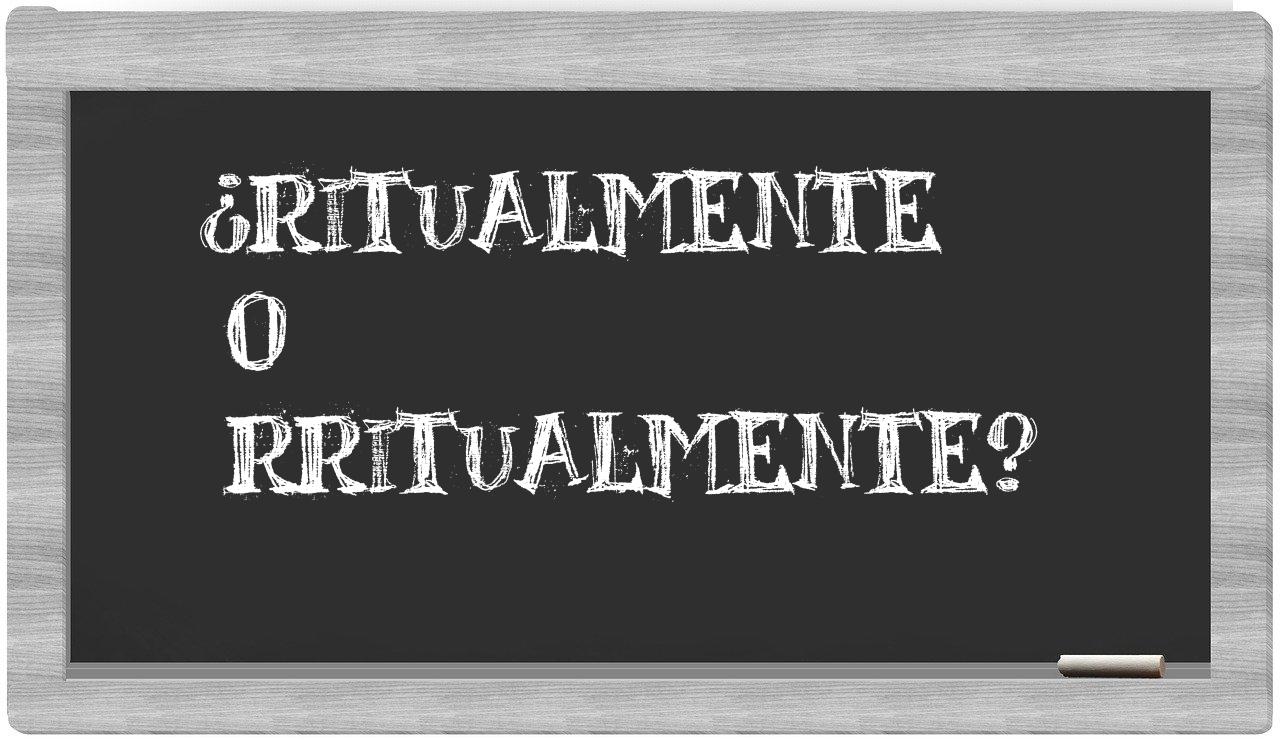 Cuando te enfrentes a la elección entre ritualmente y rritualmente, no vaciles ni un instante, puesto que únicamente ritualmente es la forma adecuada. Recuerda que rritualmente carece de reconocimiento en el Diccionario de la Real Academia Española.
