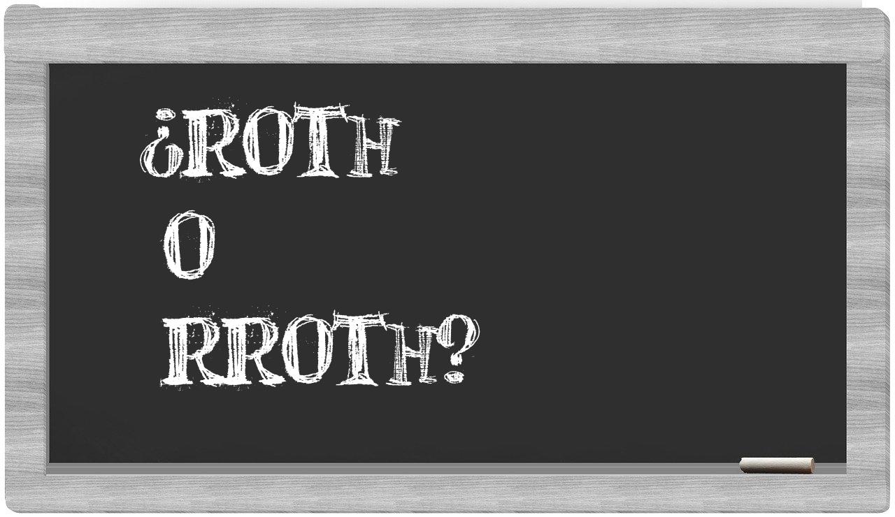 Cuando se trata de la conexión entre roth y rroth, la incertidumbre no debería existir, puesto que únicamente roth es la opción que se encuentra debidamente registrada. La palabra rroth no forma parte del léxico del Diccionario de la Real Academia de la Lengua.