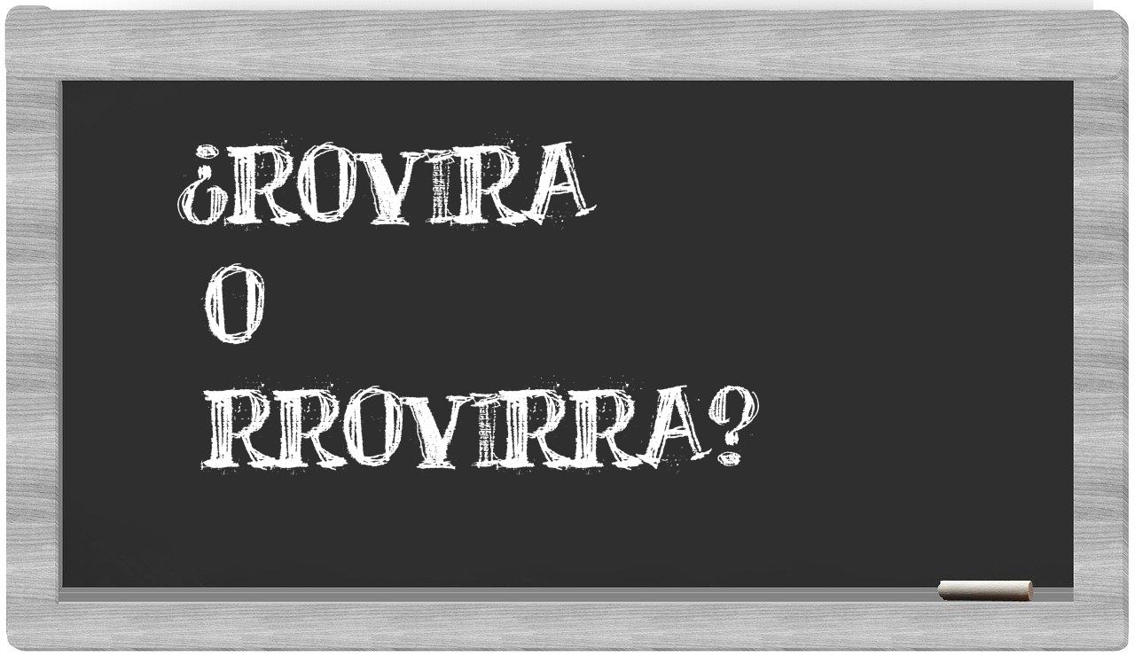 Ciertamente, en la situación específica que involucra los términos rovira y rrovirra, no deberías tener incertidumbres, puesto que únicamente rovira es la forma adecuadamente redactada. Por otro lado, rrovirra no se encuentra registrado en el Diccionario de la Real Academia Española.