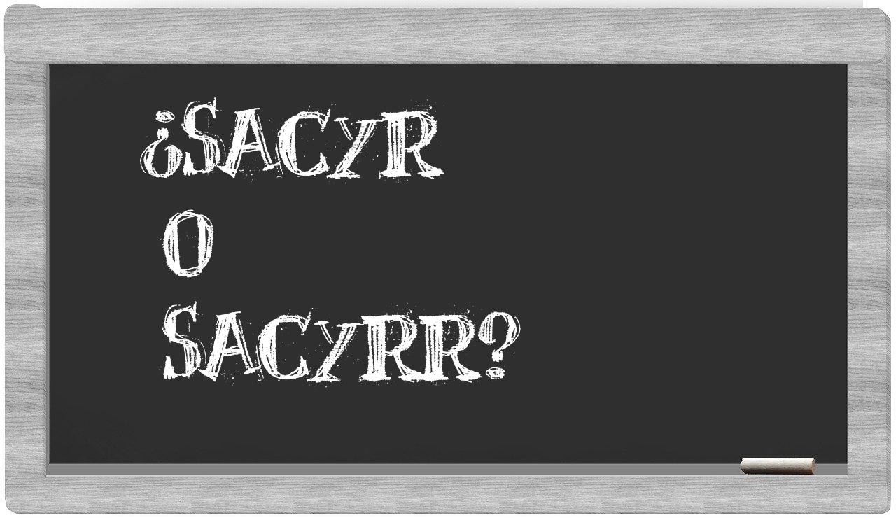 En la particular situación que involucra las expresiones sacyr y sacyrr, no deberías titubear en tu elección, dado que únicamente sacyr es la forma correcta; por otro lado, sacyrr no se encuentra registrada en el Diccionario de la Real Academia Española.