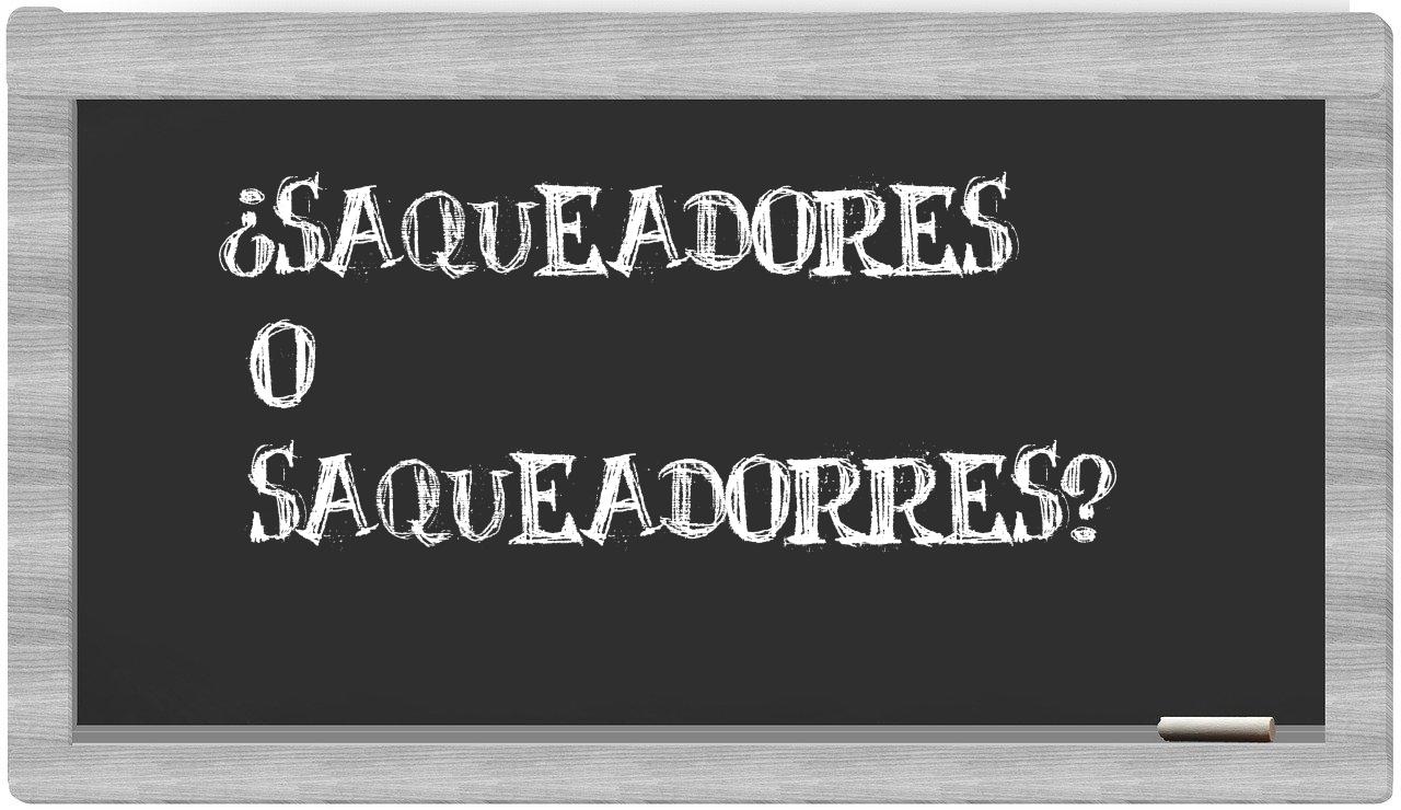 Cuando te enfrentes a la disyuntiva entre saqueadores y saqueadorres, es crucial que no titubees, pues únicamente saqueadores se encuentra correctamente plasmada en el idioma. Por su parte, saqueadorres carece de reconocimiento en el prestigioso Diccionario de la Real Academia Española.