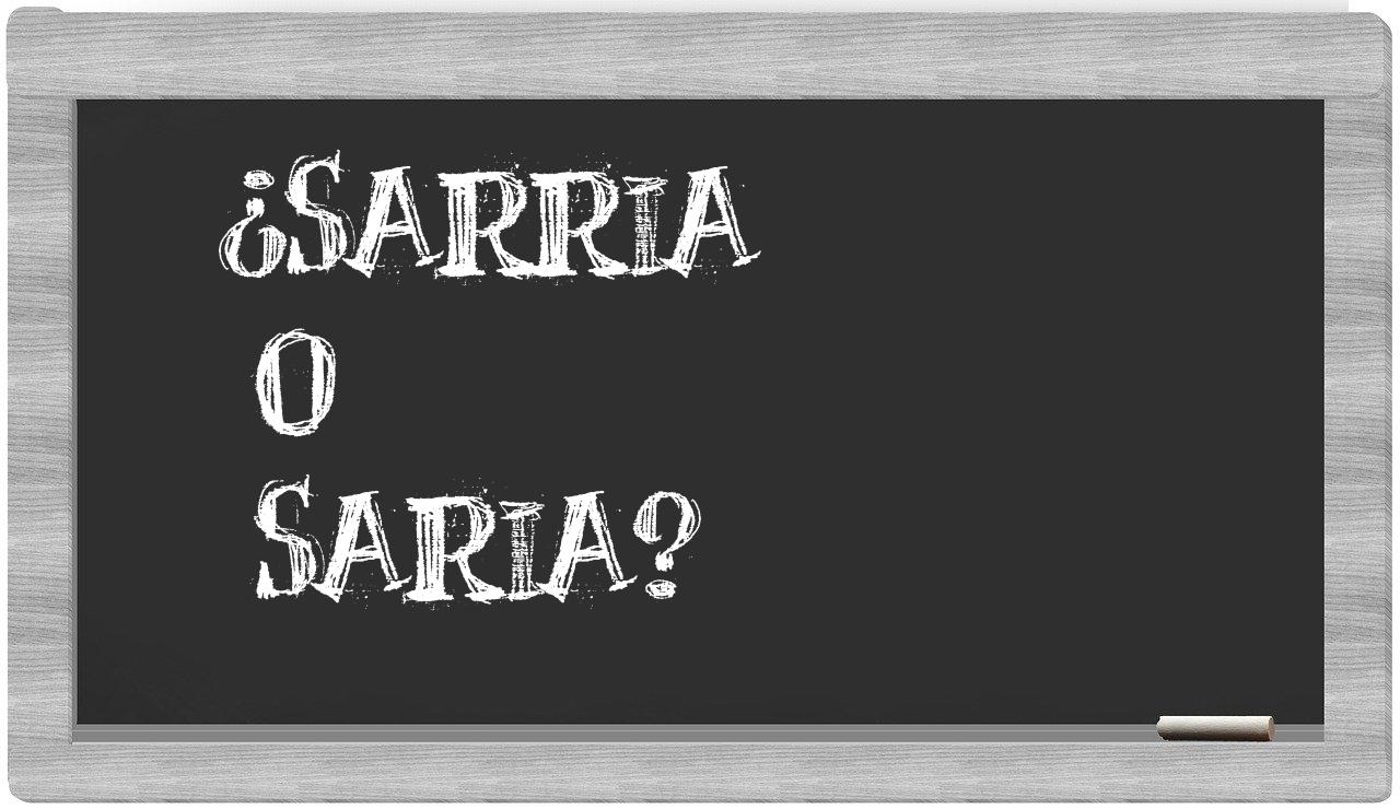En la situación específica que involucra los términos sarria y saria, no deberías titubear, pues únicamente sarria se encuentra debidamente redactada. Por otro lado, saria no se halla en el léxico de la Real Academia de la Lengua.
