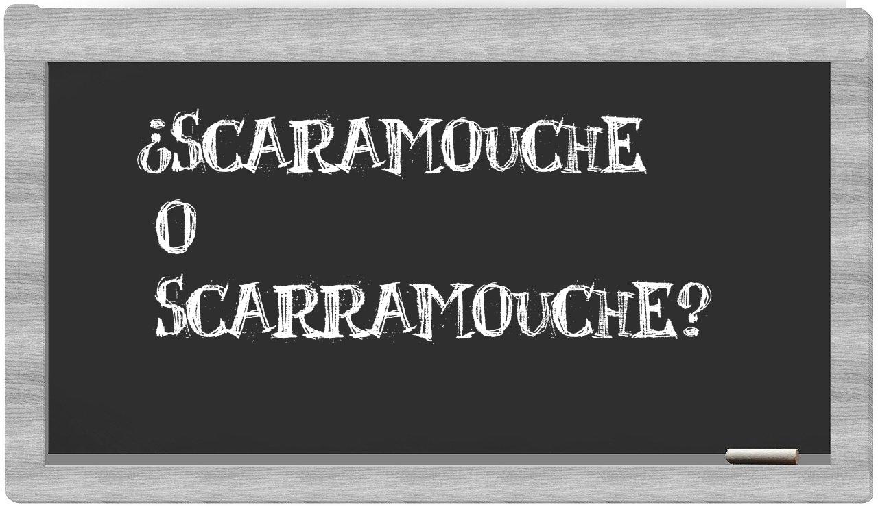 Cuando se trata de las palabras scaramouche y scarramouche, no hay espacio para la incertidumbre, pues únicamente scaramouche está correctamente redactada; además, scarramouche no figura en el Diccionario de la Real Academia Española.