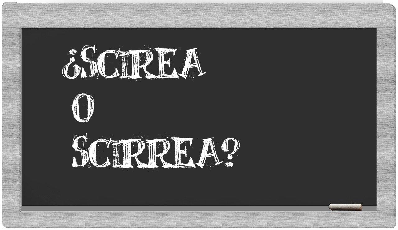 En la situación particular entre los términos scirea y scirrea, no deberías titubear en absoluto, porque únicamente scirea es la forma adecuada, mientras que scirrea se encuentra ausente en el Diccionario de la Real Academia Española.