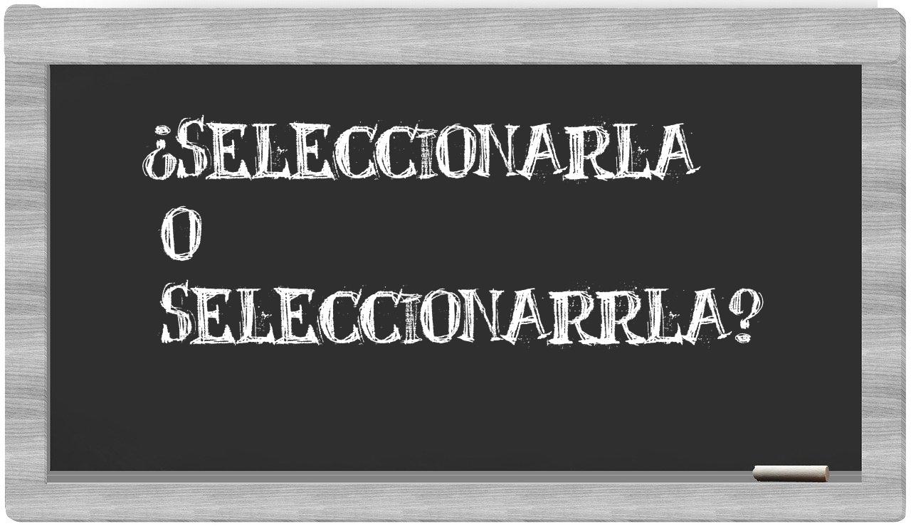 Cuando se trata de distinguir entre seleccionarla y seleccionarrla, la elección es indiscutible, dado que únicamente seleccionarla es la que se encuentra registrada de manera precisa. Por otro lado, seleccionarrla carece de reconocimiento en el Diccionario de la Real Academia Española.