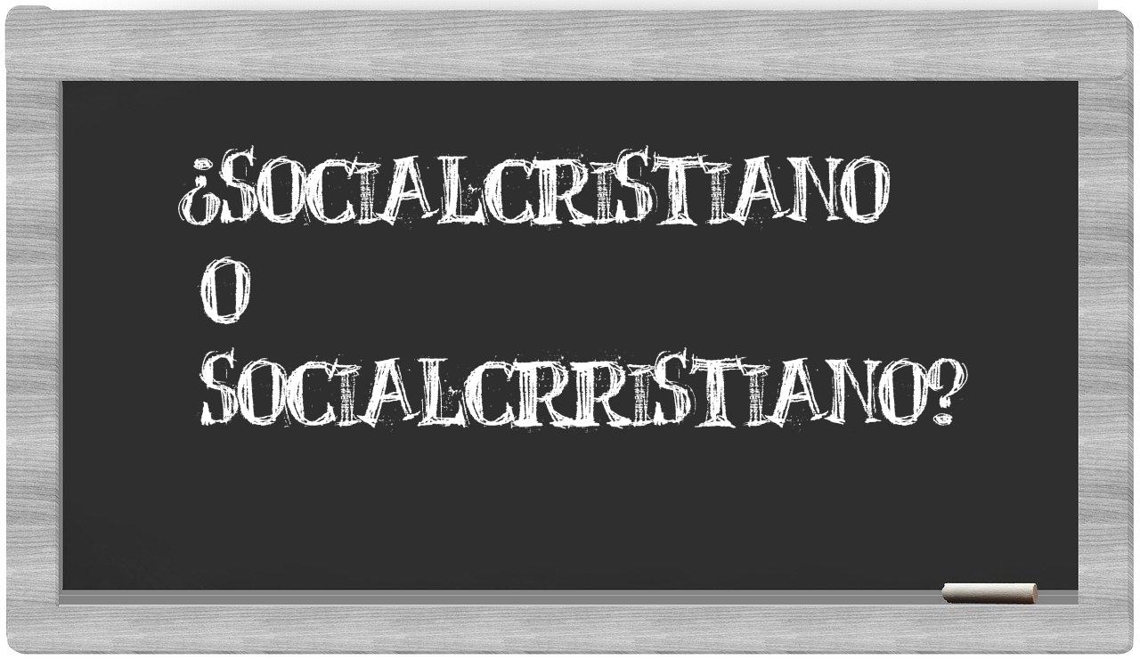 Cuando se trata de la relación entre socialcristiano y socialcrristiano, la elección es evidente y no debe suscitar incertidumbres, puesto que únicamente socialcristiano se encuentra correctamente redactada. La palabra socialcrristiano carece de reconocimiento en el Diccionario de la Real Academia de la Lengua.