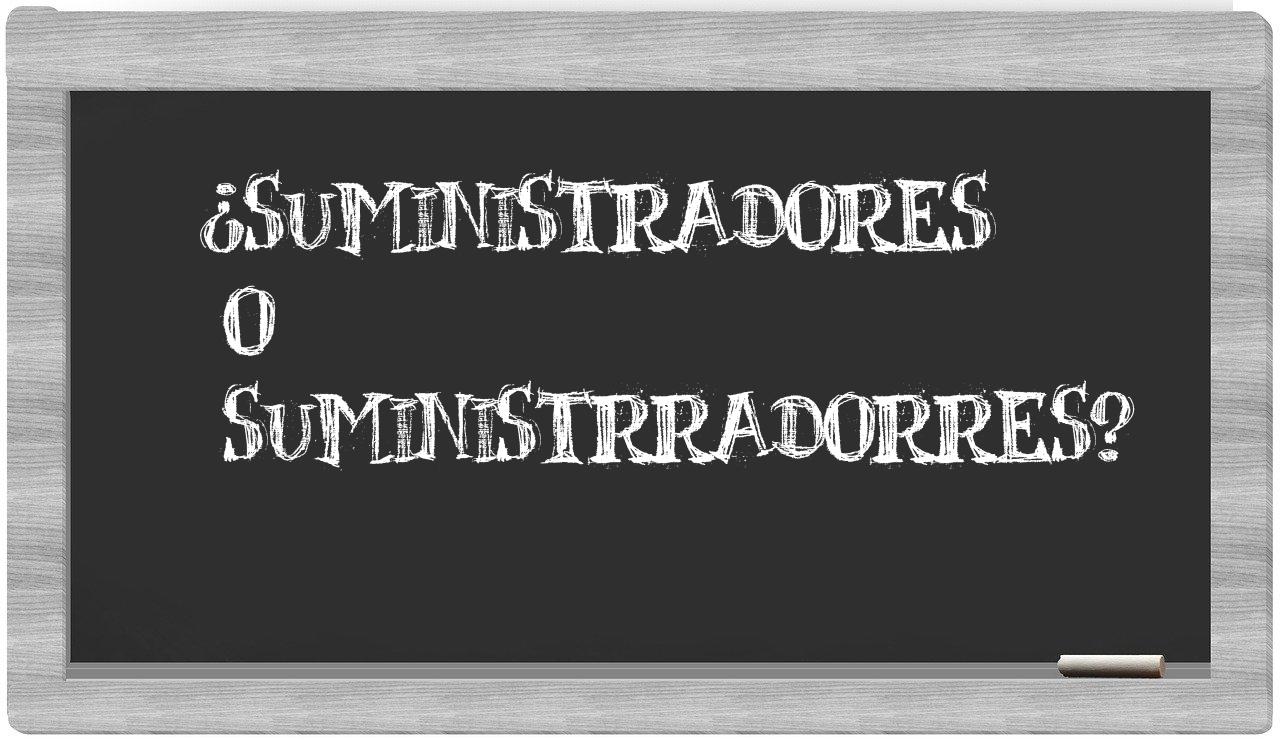 Cuando se trata de discernir entre suministradores y suministrradorres, es fundamental que no tengas ningún tipo de incertidumbre, puesto que únicamente suministradores se encuentra debidamente registrada en el léxico oficial de la Real Academia Española, mientras que suministrradorres carece de validación en su repertorio lingüístico.