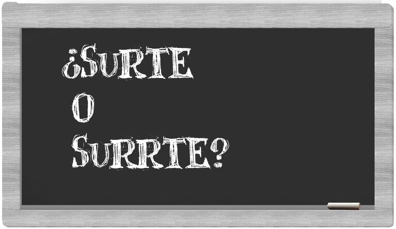 En la particular situación que involucra los términos surte y surrte, cualquier incertidumbre sería inapropiada, dado que exclusivamente surte se encuentra correctamente redactada. Por otro lado, surrte no figura en el Diccionario de la Real Academia de la Lengua.