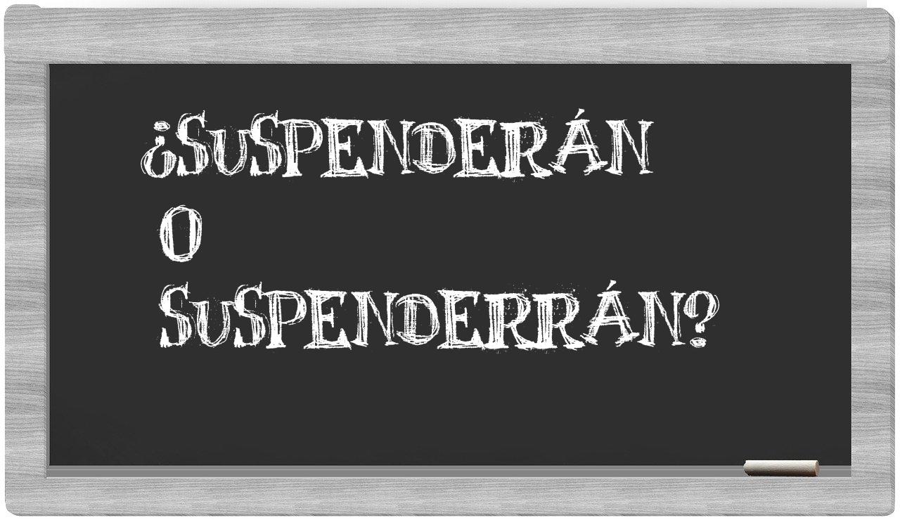 Cuando se trata de elegir entre suspenderán y suspenderrán, la elección es clara y sin vacilaciones, pues únicamente suspenderán está registrada de manera apropiada, mientras que suspenderrán no figura en el vocabulario oficial de la Real Academia Española.