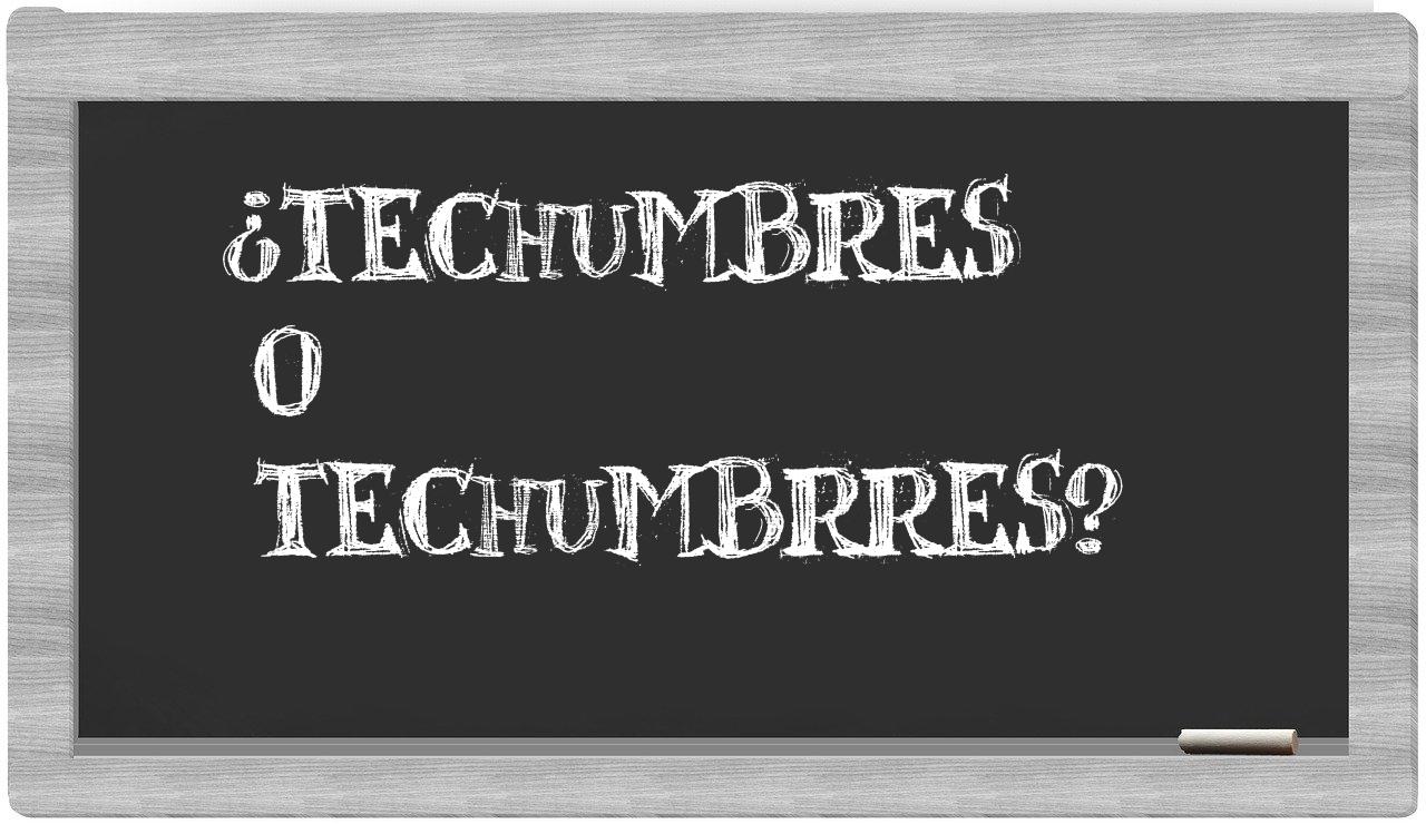 En la situación particular que involucra los términos techumbres y techumbrres, no debería haber lugar para la indecisión, puesto que únicamente techumbres se encuentra correctamente registrada. Por otro lado, techumbrres no figura en el Diccionario de la Real Academia Española.