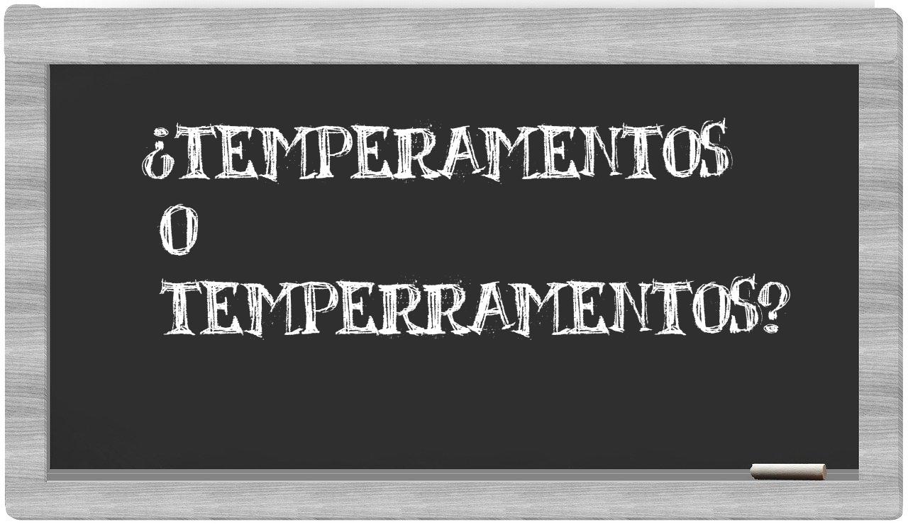 Cuando te enfrentes al dilema entre temperamentos y temperramentos, es fundamental que no titubees, puesto que únicamente temperamentos está correctamente formulada en el idioma; por otro lado, temperramentos no se encuentra registrada en el Diccionario de la Real Academia Española.