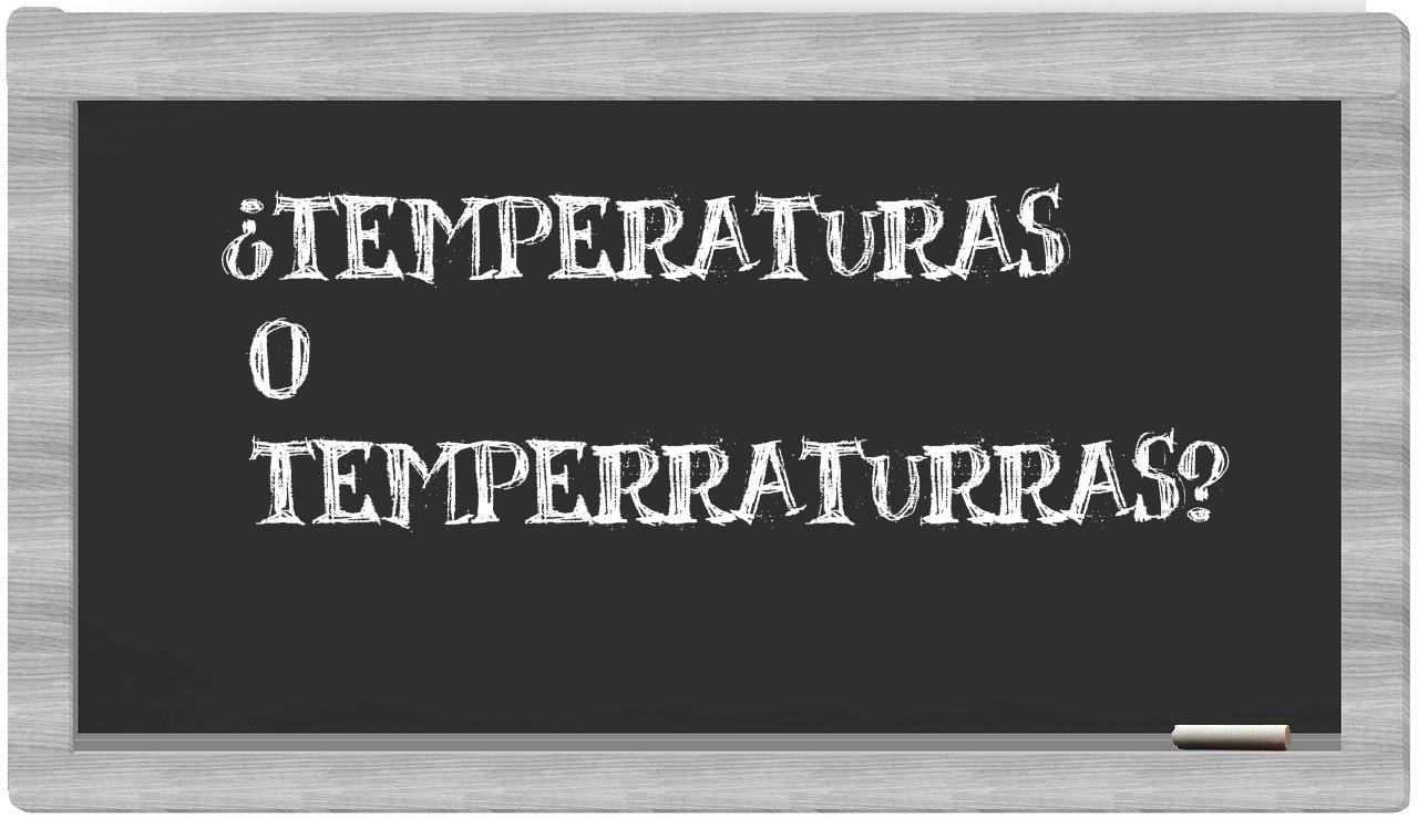 Cuando consideres las palabras temperaturas y temperraturras, es fundamental que no vaciles, puesto que únicamente temperaturas es la que está correctamente redactada. Por otro lado, temperraturras no se encuentra registrada en el Diccionario de la Real Academia Española.