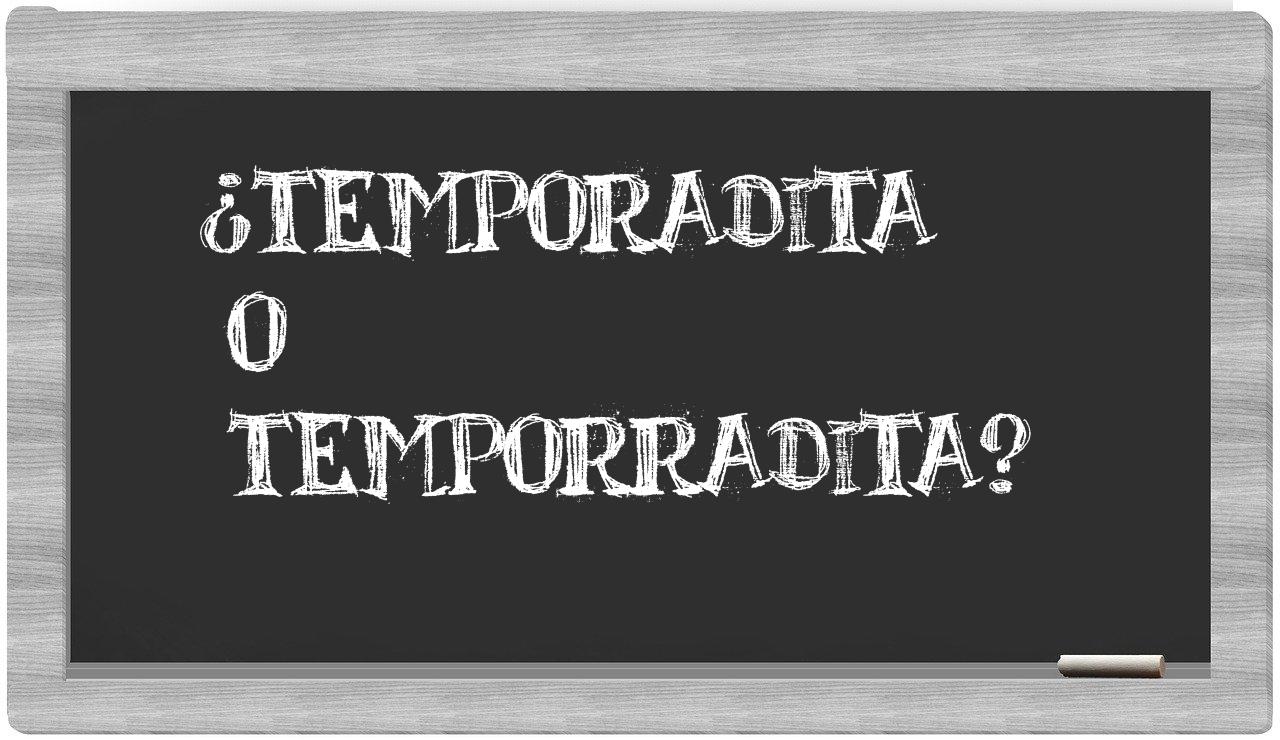 En la situación específica que involucra los términos temporadita y temporradita, no debería haber lugar para la incertidumbre, puesto que únicamente temporadita se encuentra correctamente redactada. Por su parte, temporradita no figura en el Diccionario de la Real Academia Española.