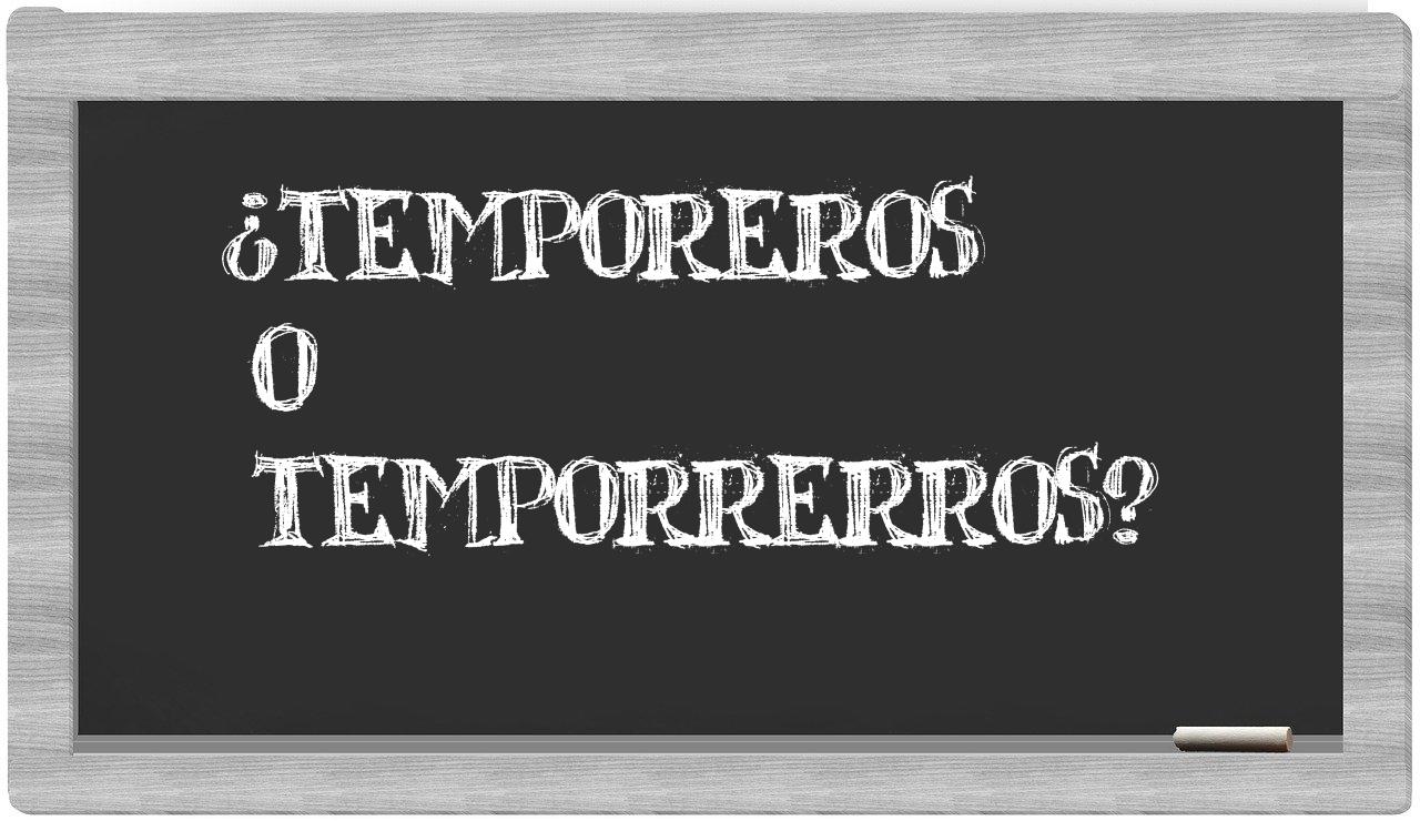 En la situación particular que involucra las voces temporeros y temporrerros, es fundamental que no te confundas, puesto que únicamente temporeros se encuentra presentada de manera adecuada. La palabra temporrerros carece de reconocimiento en el Diccionario de la Real Academia Española.