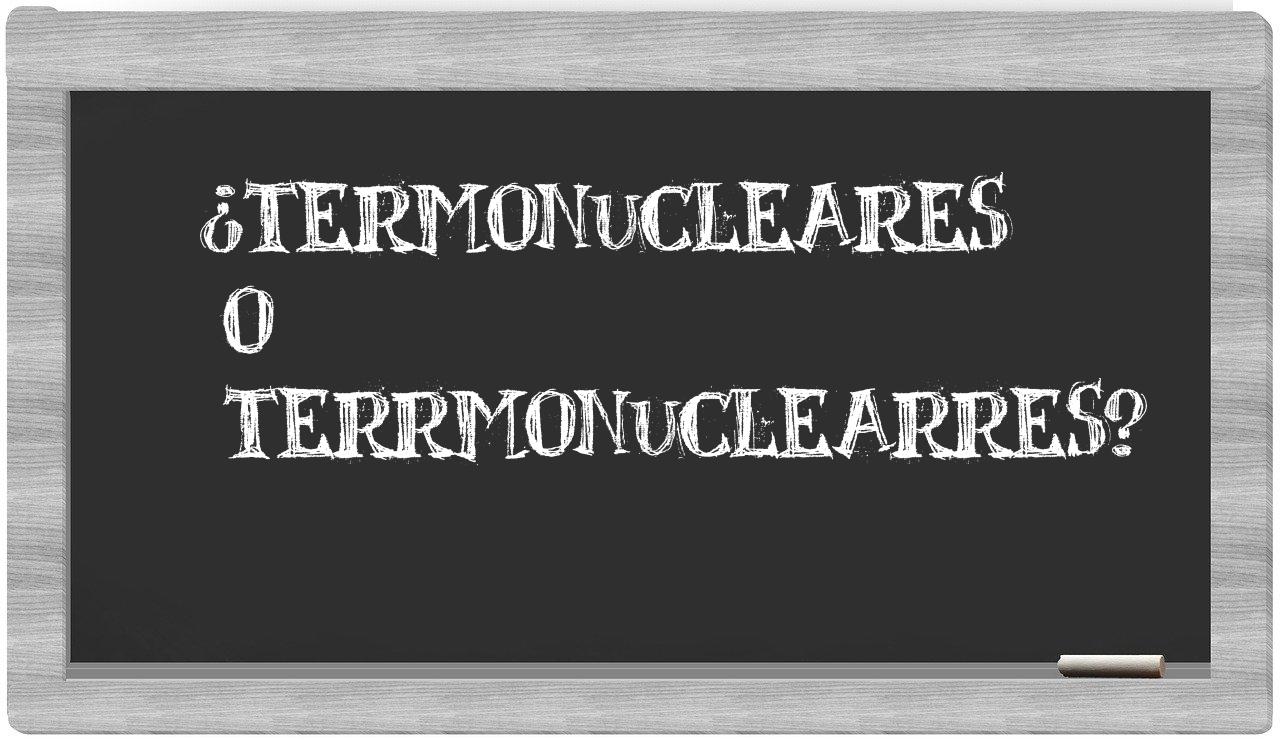 Cuando se presenta la disyuntiva entre termonucleares y terrmonuclearres, es importante que no titubees, porque únicamente termonucleares se encuentra debidamente registrada en el Diccionario de la Real Academia Española, mientras que terrmonuclearres carece de reconocimiento oficial.