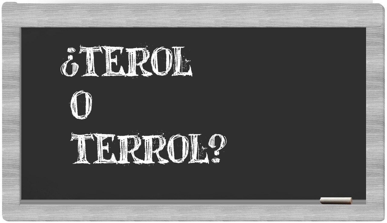 La mezcla entre terol y terrol se origina, en gran parte, por la similitud en su pronunciación. En la mayor parte de los acentos del español, las dos palabras suenan casi idénticas, lo que puede inducir a error al momento de escribirlas. No obstante, la escritura adecuada de cada término está determinada por su raíz etimológica y por las normativas particulares de la lengua española.