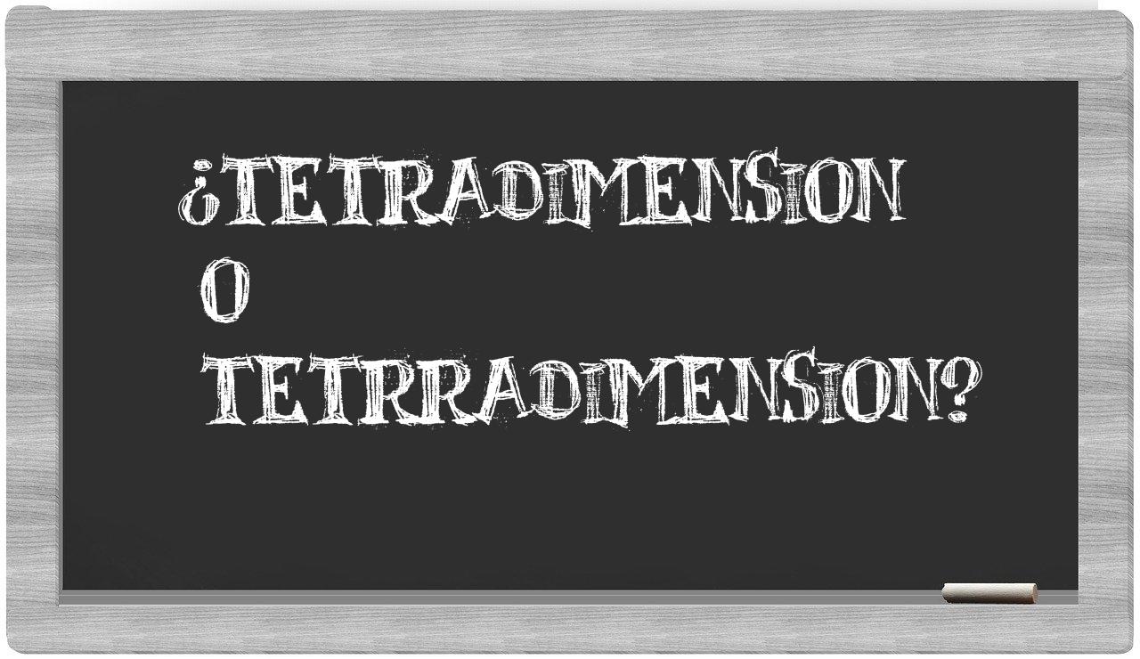 En el específico contexto de las palabras tetradimension y tetrradimension, es importante que nunca titubees, puesto que únicamente tetradimension está empleada de manera adecuada; tetrradimension no figura en el catálogo de la Real Academia Española.