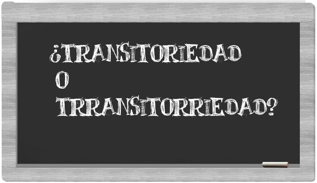 Cuando se trata de las expresiones transitoriedad y trransitorriedad, no hay lugar para la confusión, puesto que únicamente transitoriedad es la que se encuentra debidamente registrada y aceptada, mientras que trransitorriedad carece de reconocimiento en el Diccionario de la Real Academia Española.