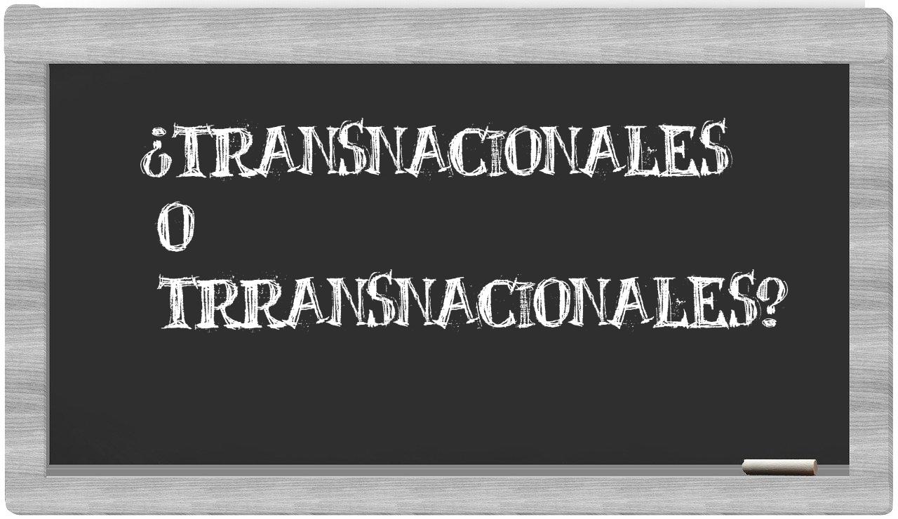 Cuando se presenta la situación entre transnacionales y trransnacionales, es fundamental que no existan titubeos, puesto que únicamente transnacionales es la opción que se encuentra correctamente redactada. Por otro lado, trransnacionales carece de reconocimiento en el Diccionario de la Real Academia Española.