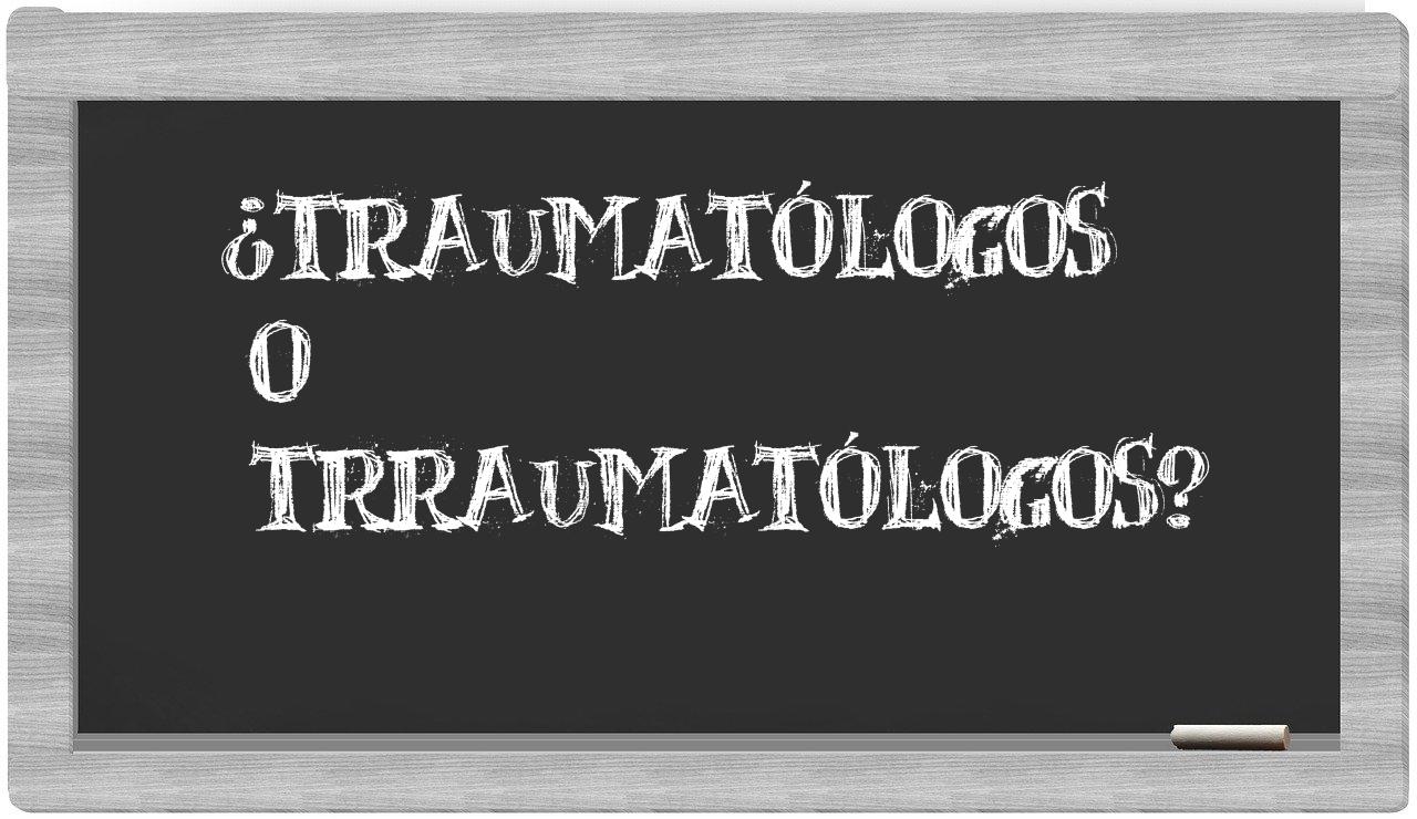 Cuando se trata de distinguir entre traumatólogos y trraumatólogos, no deberías experimentar ninguna inseguridad, pues únicamente traumatólogos se encuentra registrada de manera adecuada. En cambio, trraumatólogos no se halla en el Diccionario de la Real Academia Española.